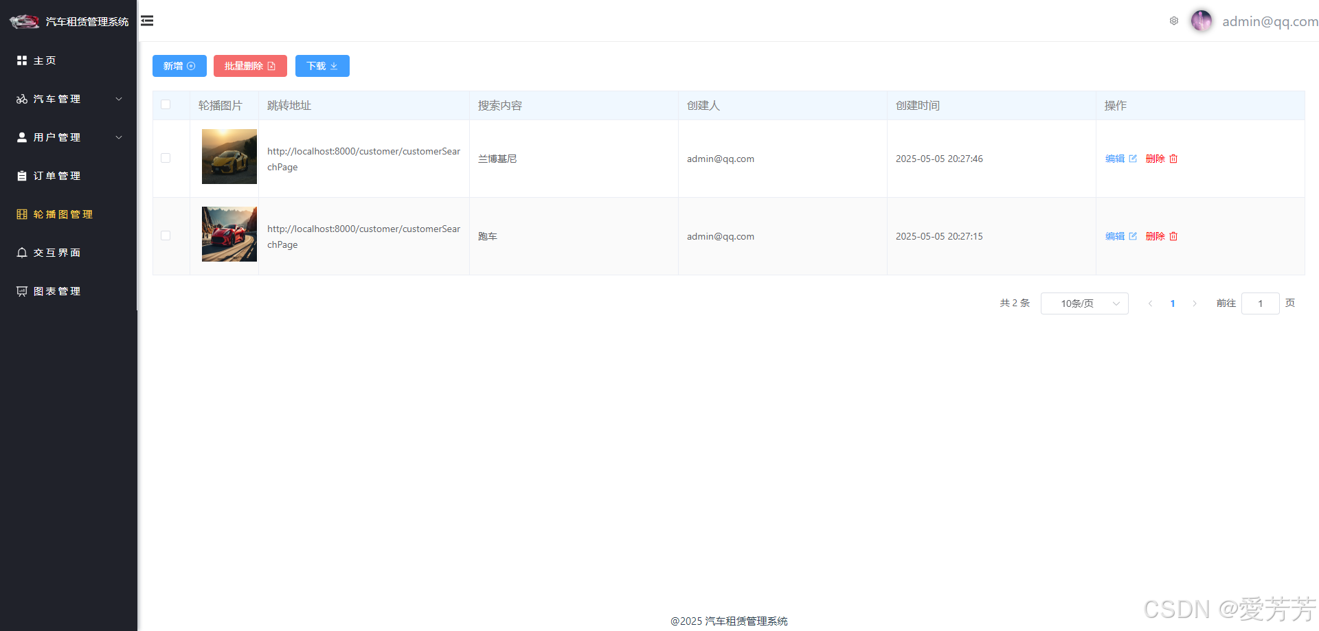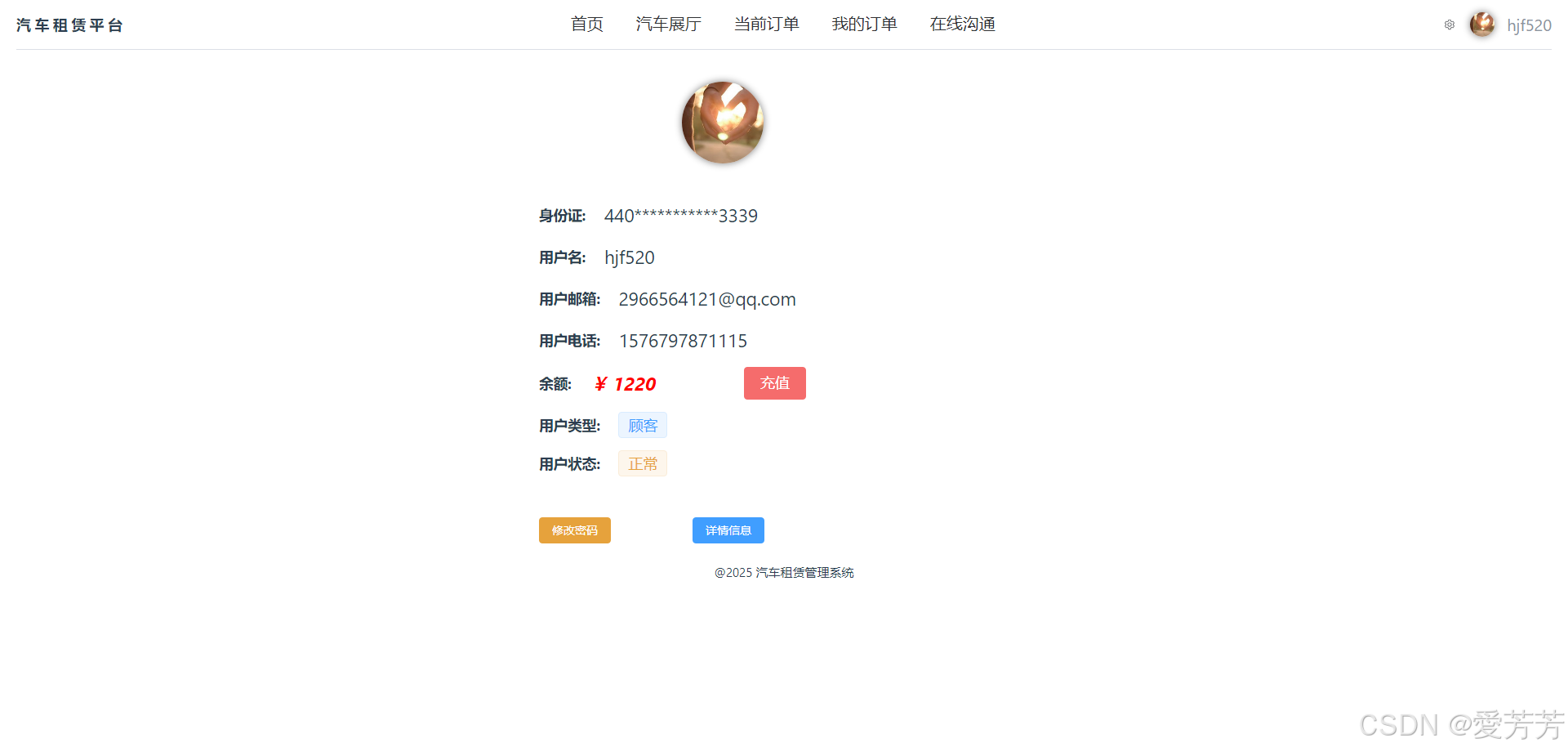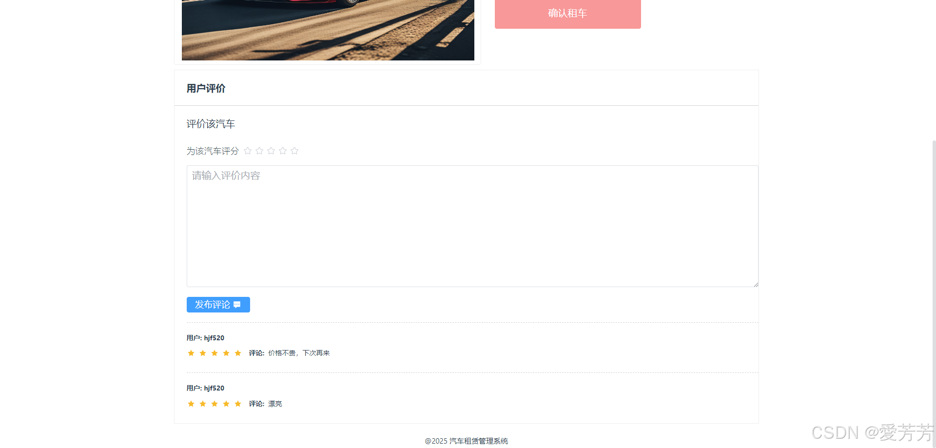 项目采用前后端分离的方式实现,后端:springboot+mysql+redis实现,前端:vue+element-plus+router+vite等实现。系统其中分为管理后台和游客租赁商城两个端,用户总体分为三种角色:超级管理员、员工、游客,超级管理员和员工登录管理后台进行汽车相关信息管理,主要权限的差别,二游客通过商城端进行注册和登录后,通过充值余额后可以进行汽车的租赁操作。