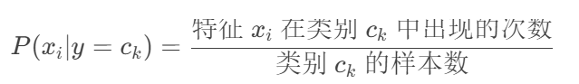 P (c j )代表还没有训练模型之前,根据历史数据/经验估算c j 拥有的初始概率。P (c j )常被称为c j 的先验概率(prior probability) ,它反映了c j 的概率分布,该分布独立于样本。通常可以用样例中属于c j 的样例数|c j |比上总样例数|D|来近似,即: