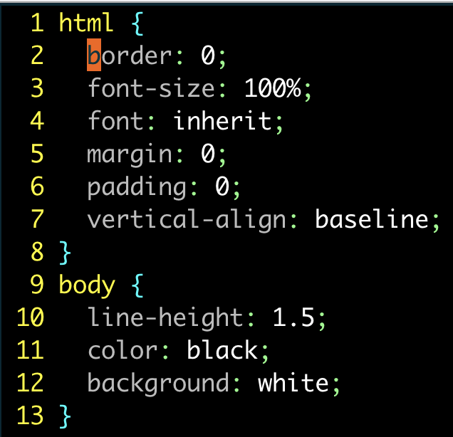 其实,我们可以用一条 :global 命令对文件中所有规则的属性进行排序。假设我们在本例的样式表中运行以下命令: