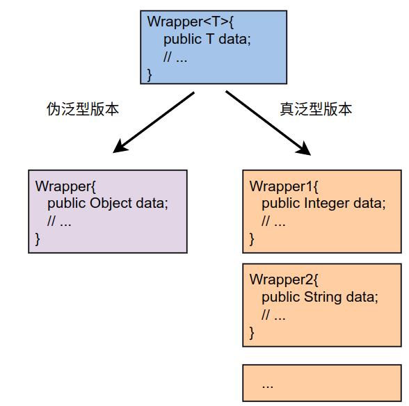 可以看到,真泛型会针对具体的类型生成独有的类型。针对Wrapper 就应该有是这样: