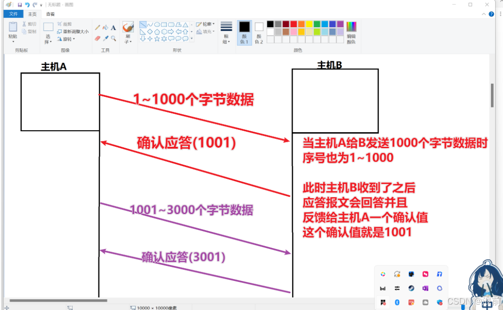 确认序号的编写方式按照发送端的最后一个字节数据的序号 加一来进行确认序号的编写