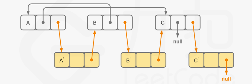 问题:当前复制的 random 指针仍然指向原链表中的节点,而不是新复制链表中的节点。