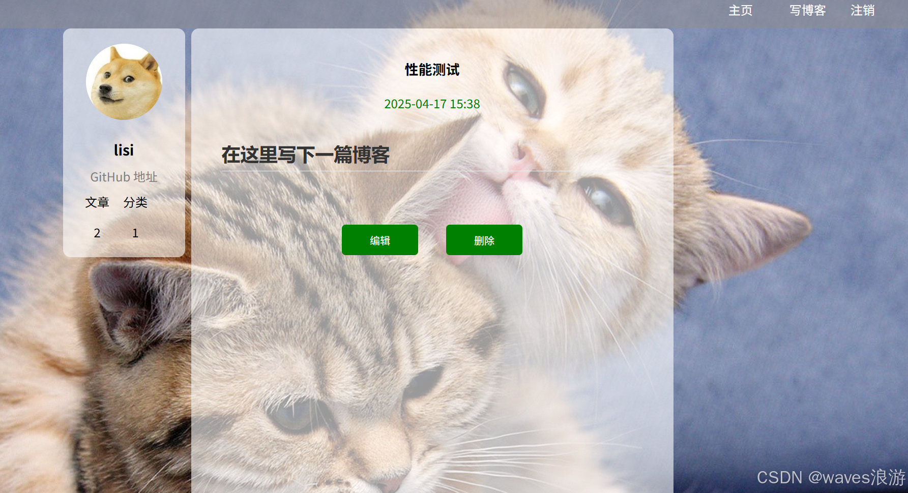 在博客列表页,我们可以查看用户信息和发布的博客。