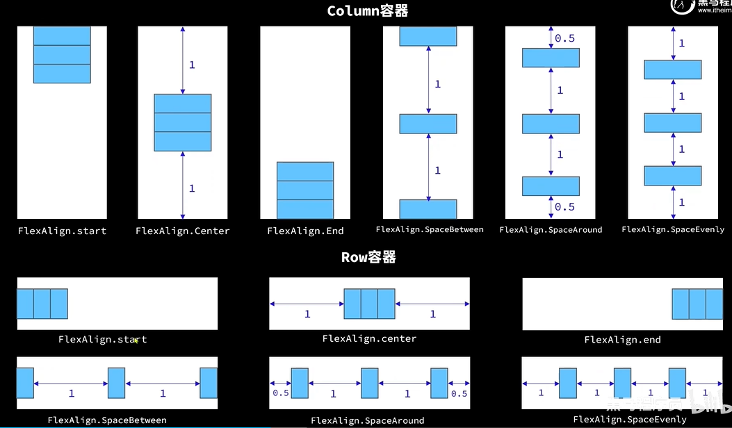 .justifyContent(FlexAlign.SpaceBetween)