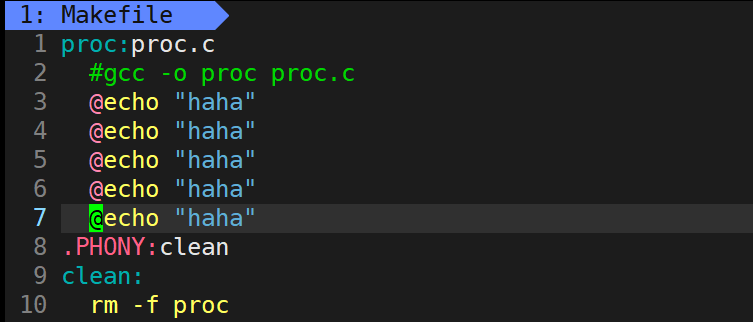proc:proc.c 这一行叫做依赖关系,冒号右边的叫做依赖文件列表,依赖文件列表可以有一个或多个文件,也可以有零个文件,如 clean 这一行,它也是一行依赖关系,但它的依赖文件列表中没有文件。