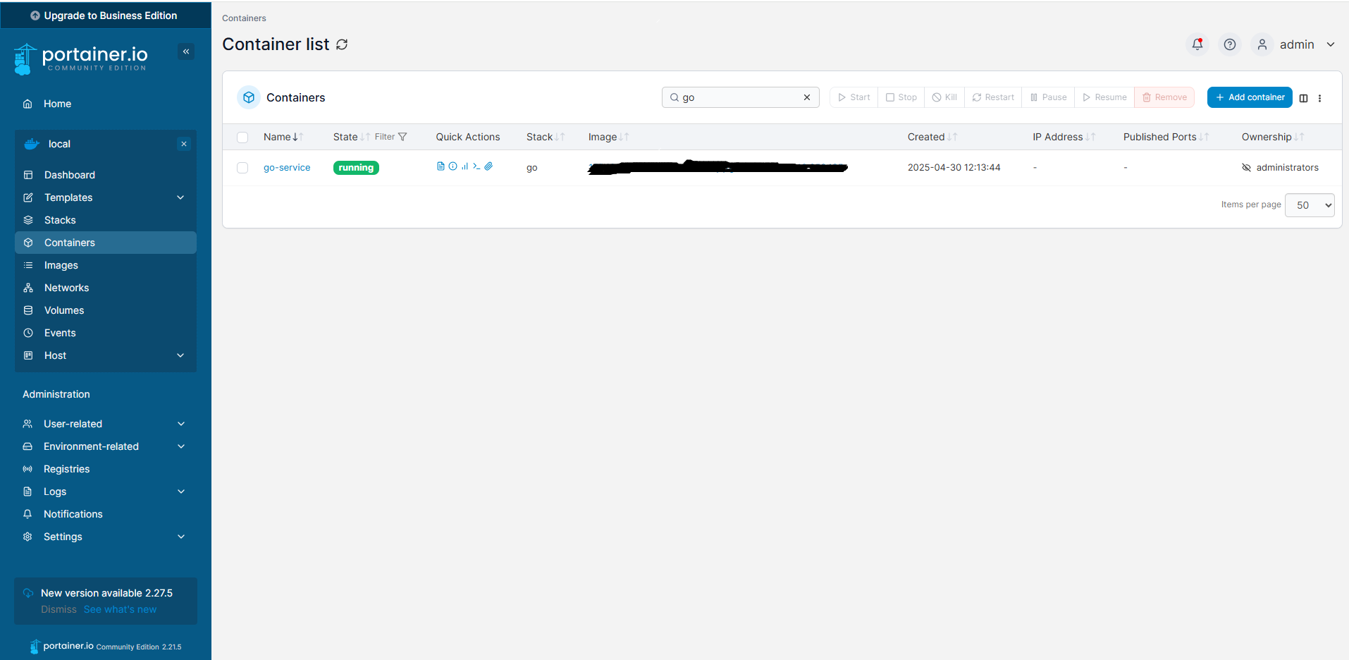 首先打开Docker可视化管理工具Portainer,打开后的界面如下图所示