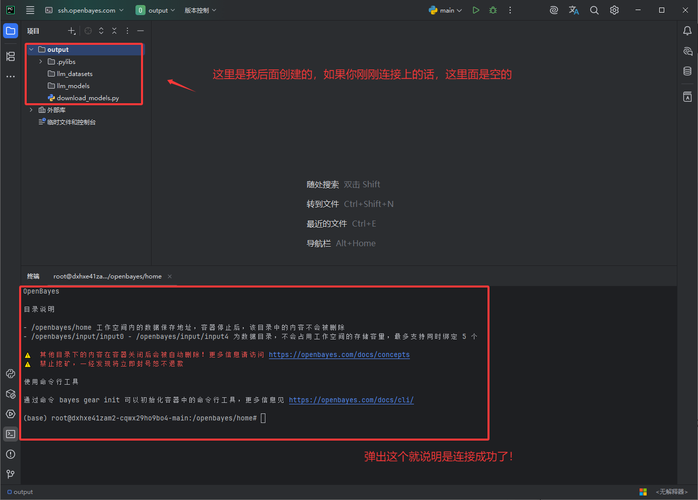 在远程主机上设置一个项目目录,建议设置成/openbayes/home