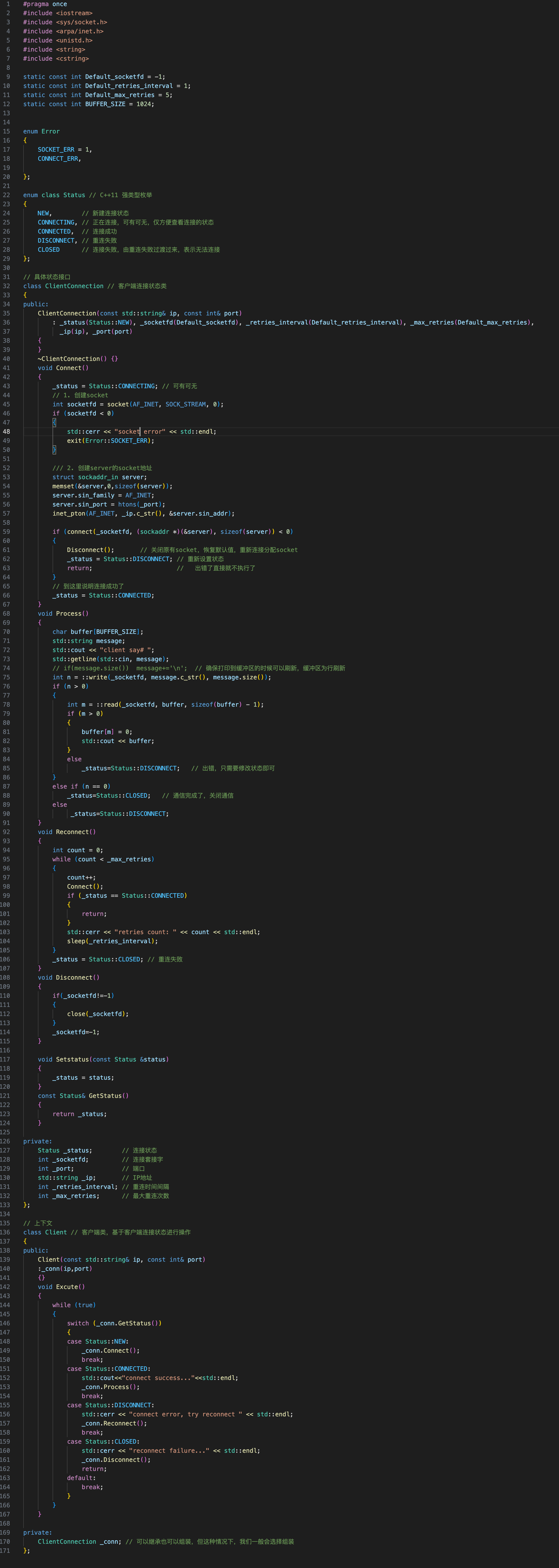 客户端部分,我们本次采用状态机的设计模式实现