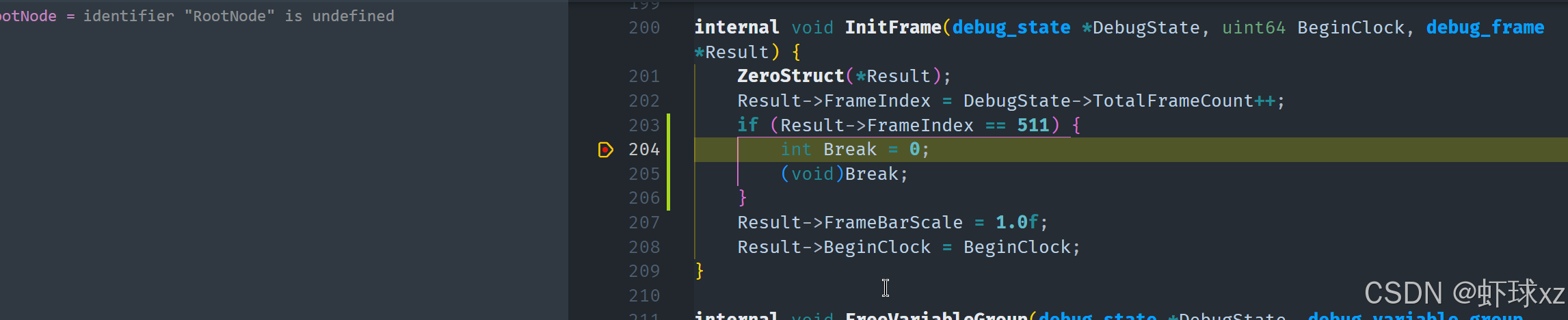 同样地,也可以直接从 debug_state.frames 中,通过 most_recent_frame_ordinal 获取某个帧信息,用于进一步的调试或显示。不过,在使用过程中发现 debug_frame 并未重载索引操作符,因此代码在当前状态下会有报错,必须先处理这个问题,才能继续使用类似数组下标的方式来访问具体帧数据。