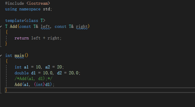 // std::cout << "模板函数调用 Add(a, b) 的结果: " << Add(a, b) << std::endl;
