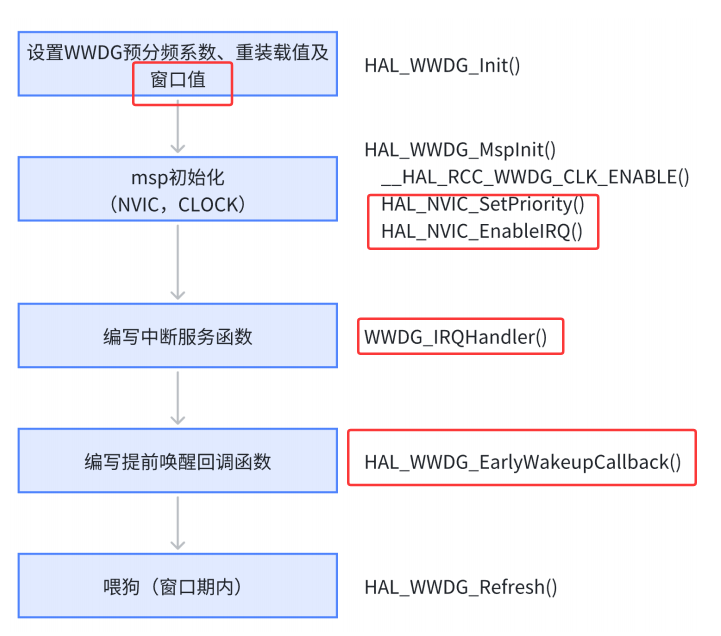 - HAL_WWDG_Init(WWDG_HandleTypeDef *hwwdg)