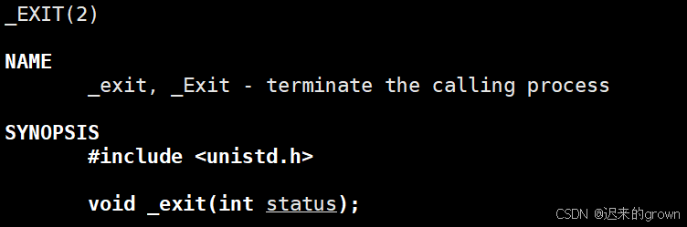 通过查看手册,我们发现_exit位于2号手册,也就是系统调用;