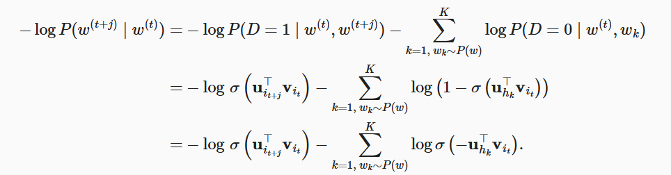 和跳元模型相似,取对数后加负号就变成了损失函数: