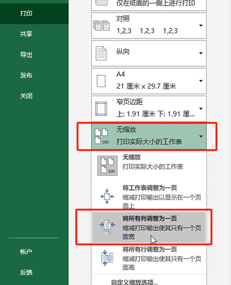 如果调完边距后仍然打印不完全,就用缩放功能。