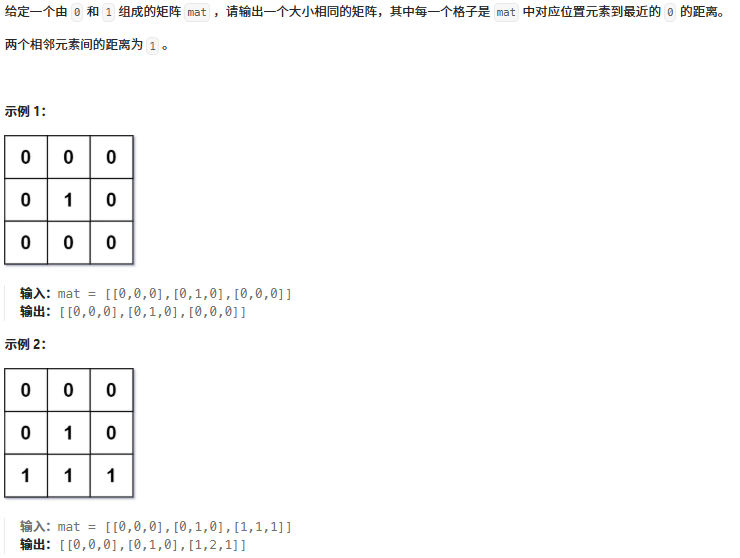 题目链接: 542. 01 矩阵 - 力扣(LeetCode)