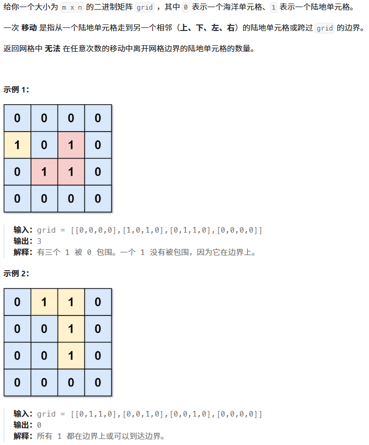 题目链接:1020. 飞地的数量 - 力扣(LeetCode)