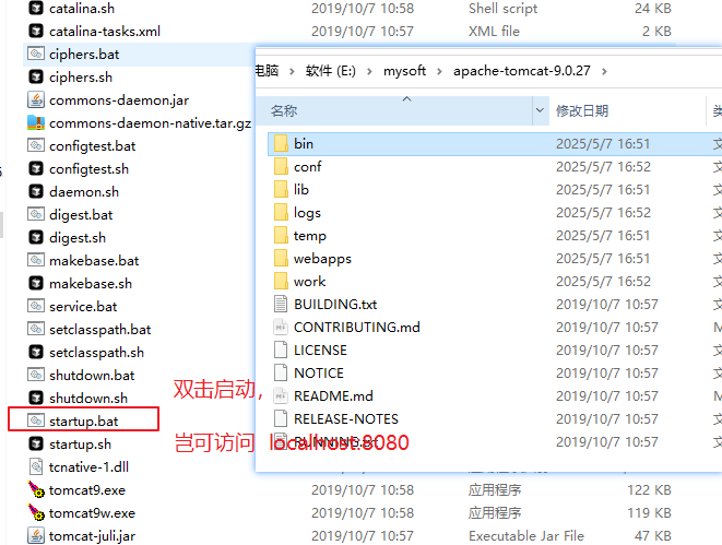 d1 的命令中,主要就是 ./startup.sh 来启动tomcat服务的