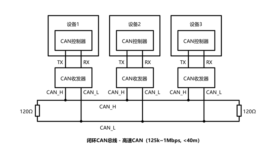 高速 CAN ( ISO11898 ): 125k~1Mbps, <40m