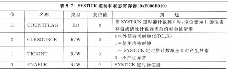 SYSTICK_CTRL 控制和状态寄存器 -- 内核手册 4.5.1