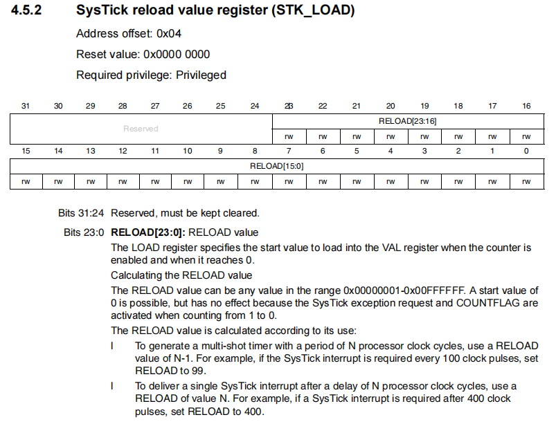 SYSTICK_LOAD 重装载值寄存器 -- 内核手册 4.5.2
