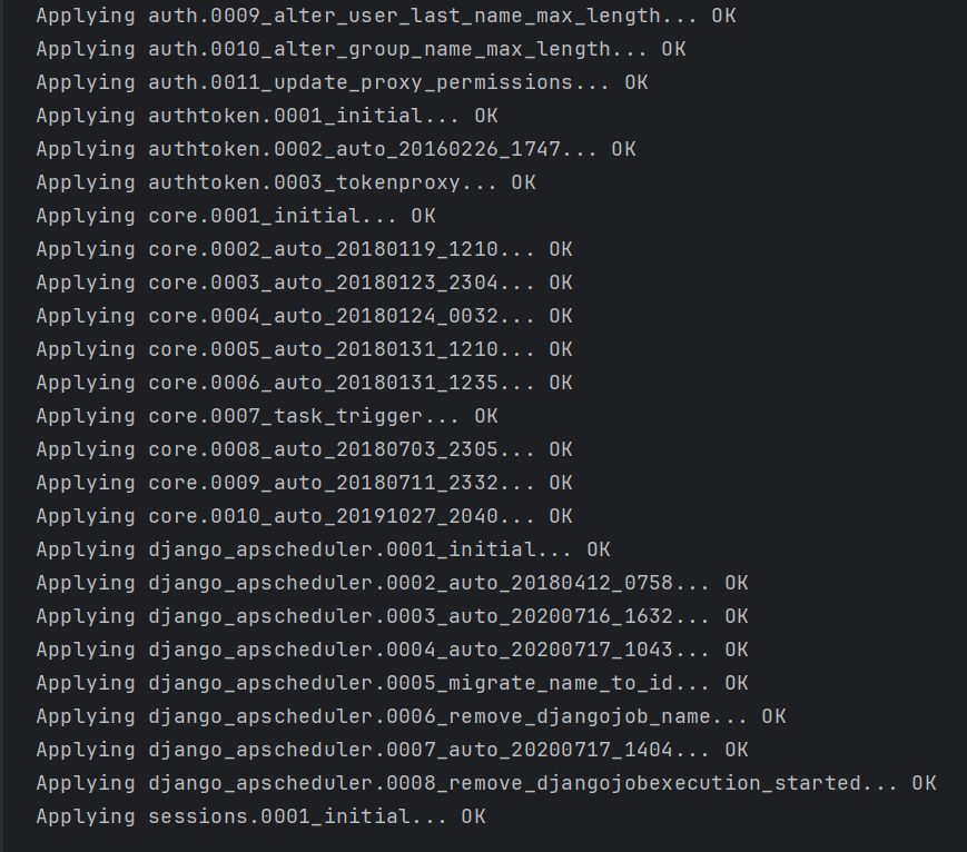 gerapy migrate:执行数据库迁移操作,创建必要的数据库表。