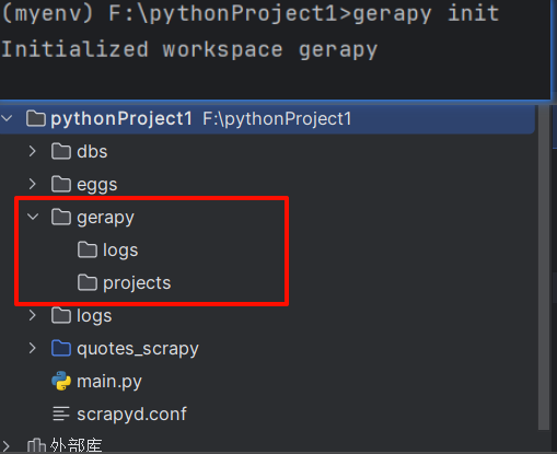 gerapy init:该命令会创建一个 Gerapy 项目的基础结构。