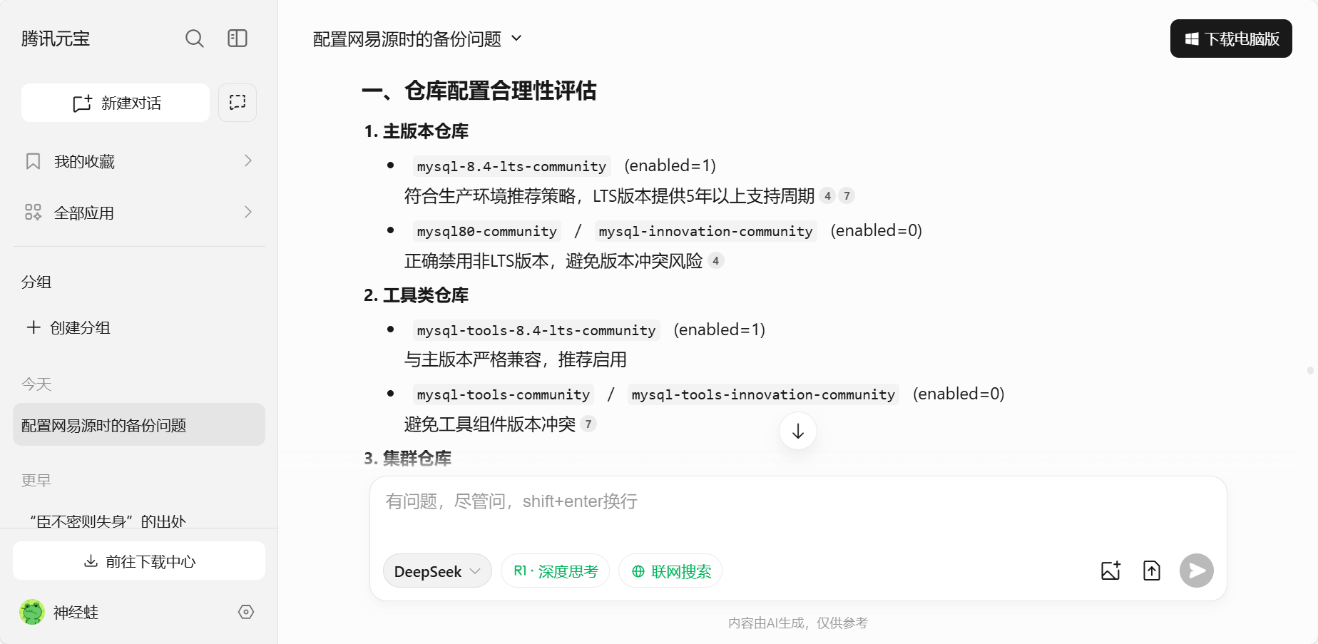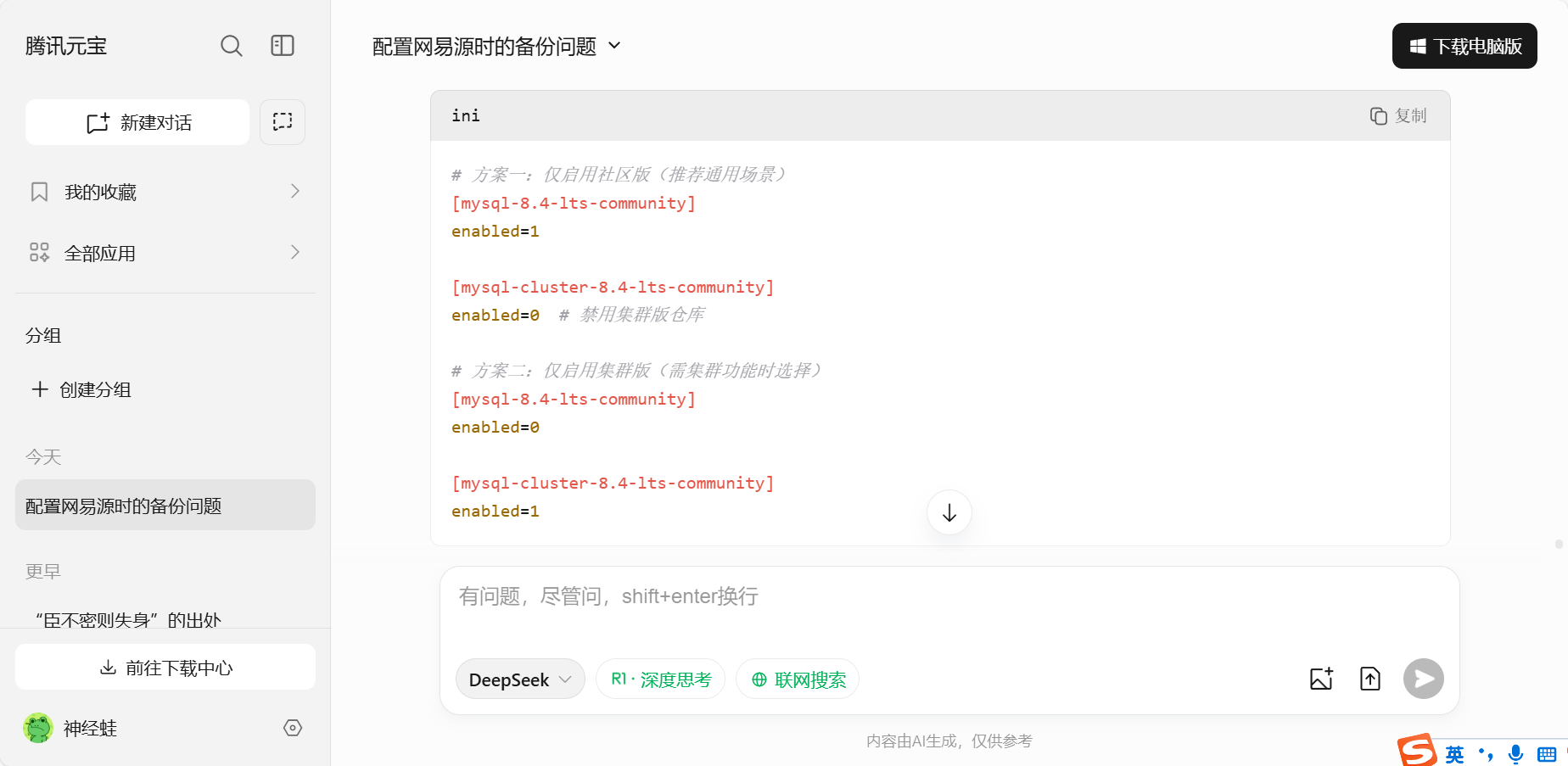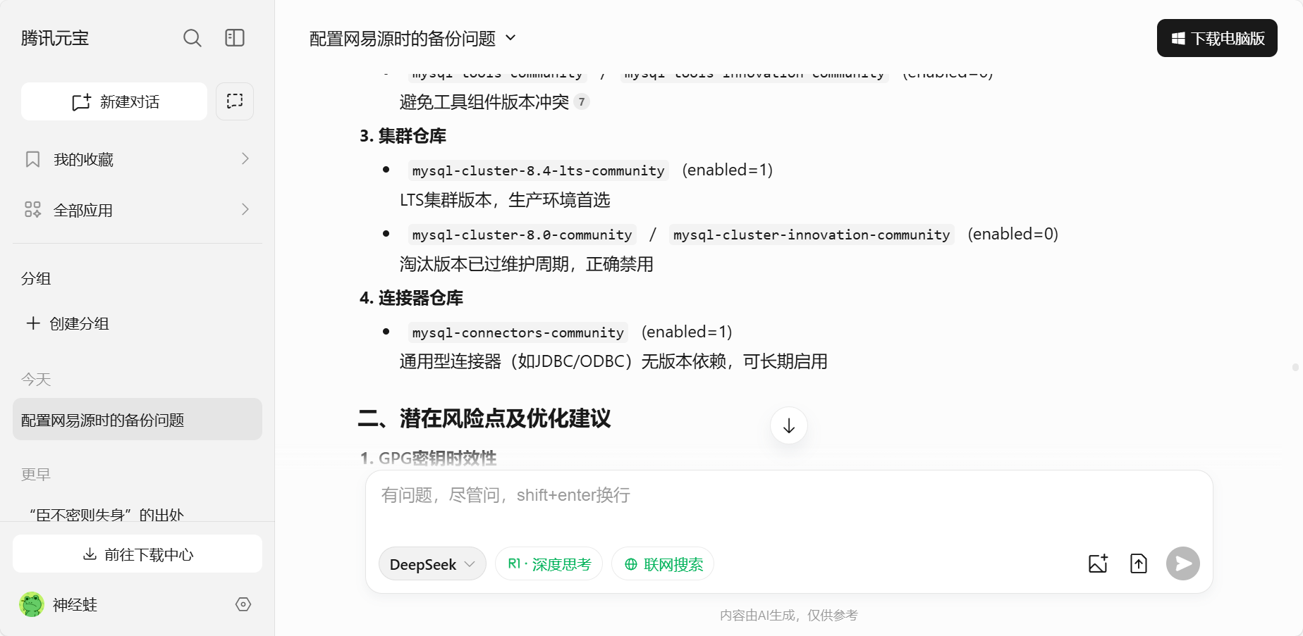 MYSQL 有官方文档 没找到什么YUM配置 根据元宝提示