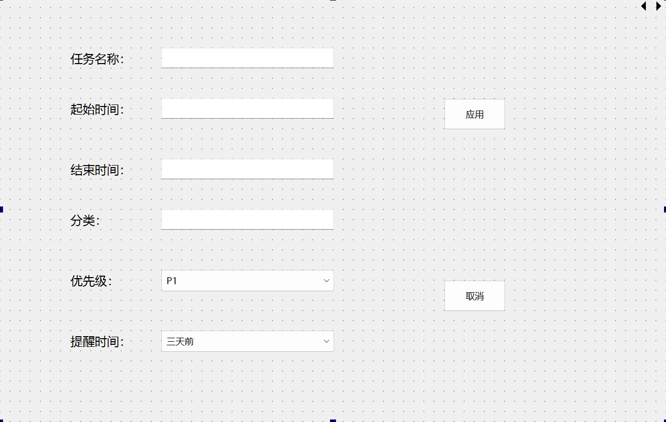 还要在这里实现cmobo box控件的显示,优先级提供P1-P7,提醒时间提供三天前、一天前、一小时前、十分钟前