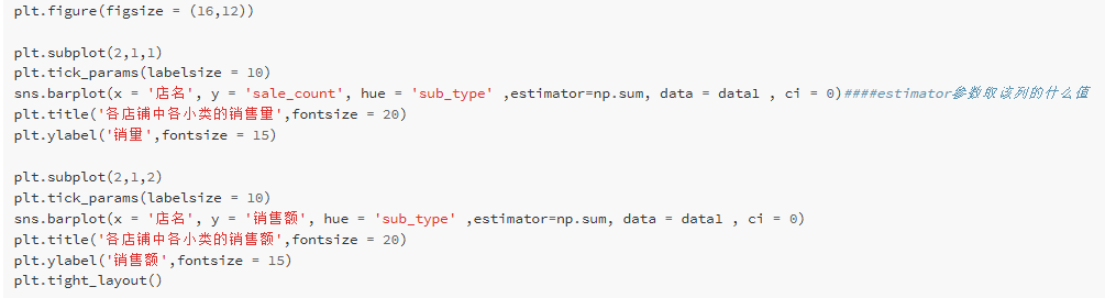 用seaborn包给出每个店铺各个大类以及各个小类的销量销售额