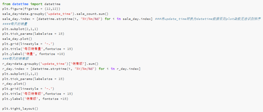 观察两个折线图,其走势是相同的,因为整个销量与销售额应该是成正相关的。