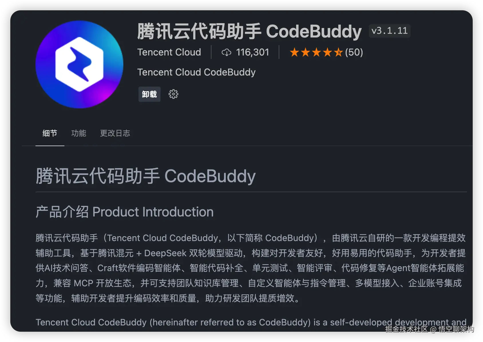 安装 CodyBuddy 插件,安装完成后如下图所示: