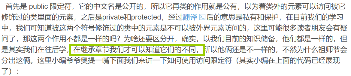 首先我们需要把继承方式和访问限定符两个概念区分开,后者是之前小编在C++的初次见面中讲到过的,它就是我们日常写类的时候使用到的特殊词,它的作用就是限定之后我们实例化对象之后对象可以访问到的类中间的方法或者成员等等;而前者是我们接下来要讲到的。