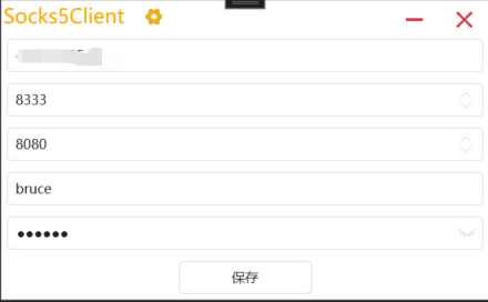 包括:服务端IP,服务端Port,本地代理Port,用户名密码