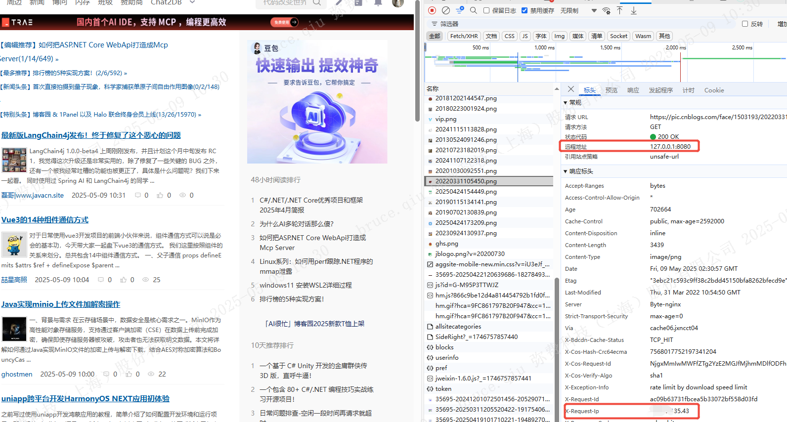 可以看到代理成功,走的是本机的代理和服务端的代理请求