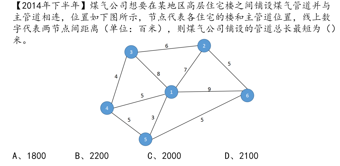 所有节点都找到了,所以距离为:3+5+4+5+5=22 答案为B