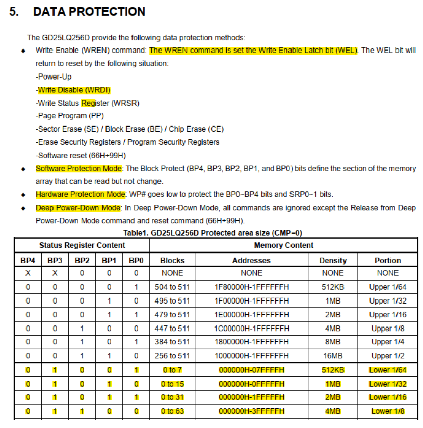 GD25有近40条指令,但是对于我们远程升级来说很多指令我们完全不要去使用,上图中加黄的是筛选出来的将在远程升级中使用的指令码;