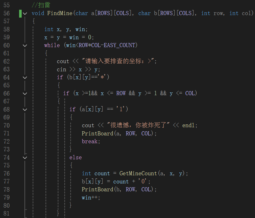 以上是雷游戏核心逻辑的代码。 FindMine 函数负责游戏流程: