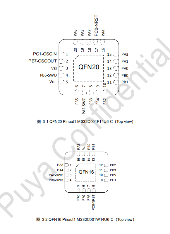 MS32C001是普冉半导体(Puya)推出的基于 ARM® Cortex®-M0+ 内核 的 32 位微控制器,专为高性能、低功耗的嵌入式应用设计。工作频率最高24MHz,具有18KB的Flash存储器和1.5KB的SRAM。支持1.7V至5.5V宽工作电压范围,-40℃ ~ 85℃工作温度,可适用于多种低功耗应用场景,如工业控制、手持设备等。有Sleep(典型电流 0.5~0.8 mA)、Stop (典型电流 1.5~1.7 μA)两种低功耗模式。