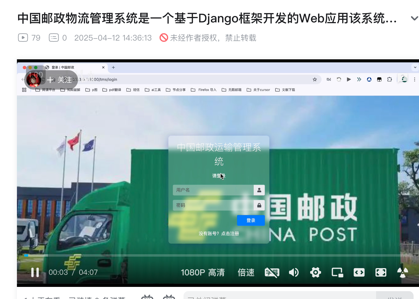 中国邮政物流管理系统是一个基于Django框架开发的Web应用,旨在提供全面的物流业务管理功能。该系统支持运单管理、车辆调度、物流跟踪、财务结算等核心业务流程,适用于邮政企业的物流业务管理场景。