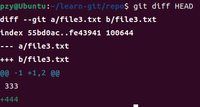 git diff HEAD(对比当前工作区的文件和最新一次提交(HEAD)之间的差异)
