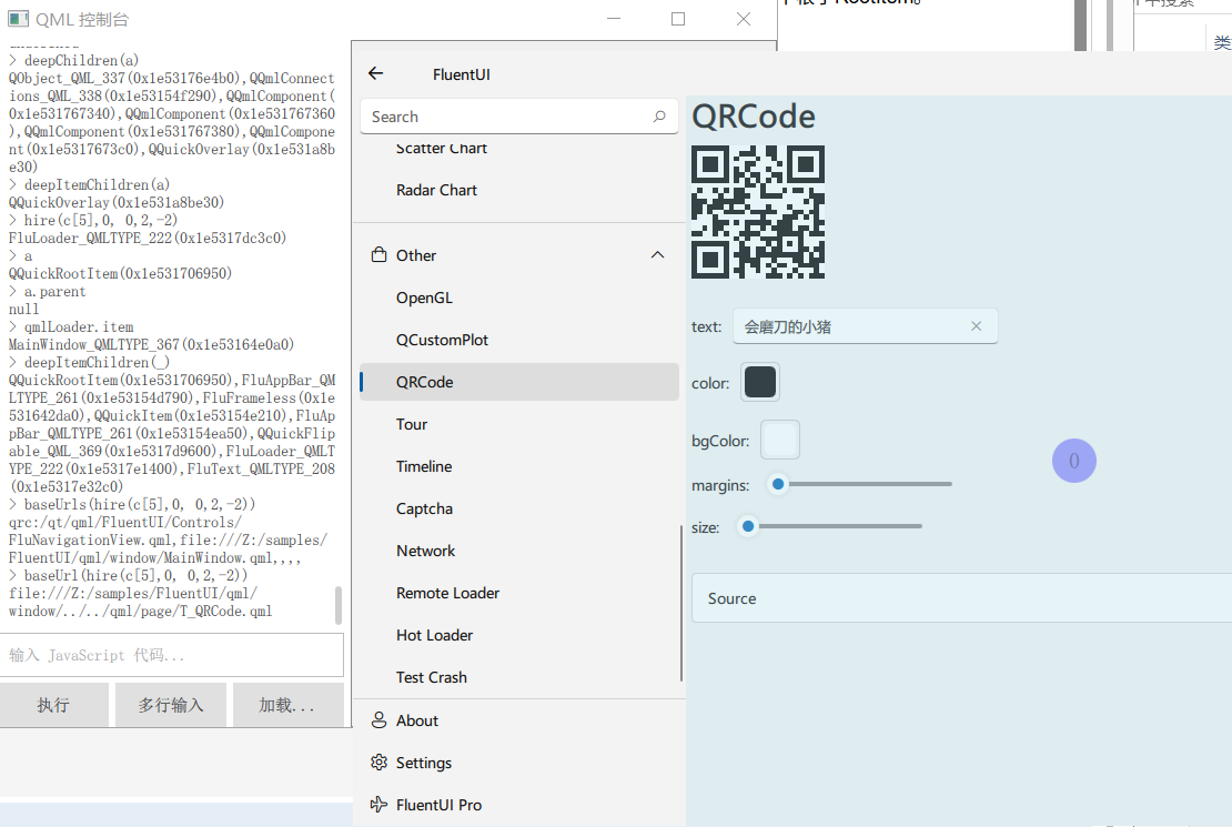 这几个组件库的例子都需要编译程序。下面的例子是直接去调试qml源文件,在缺少必要exe设置的环境的情况下,如何用qmlconsole将环境设置弄好。例如qmlconsole提供UrlInterpreter,将qrc资源路径直接拦截重定向到本地源文件。经过一番努力后,终于将FluentUI在5.14的环境下编译完成。