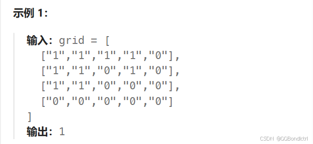 给你一个由 '1'(陆地)和 '0'(水)组成的的二维网格,请你计算网格中岛屿的数量。