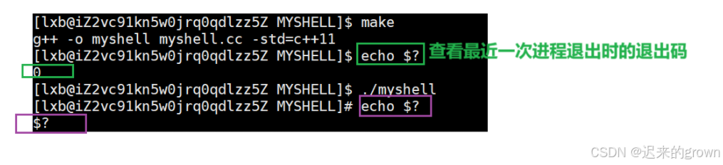 但是在我们的shell中,如果让子进程去执行echo $?,它则是直接输出$?。