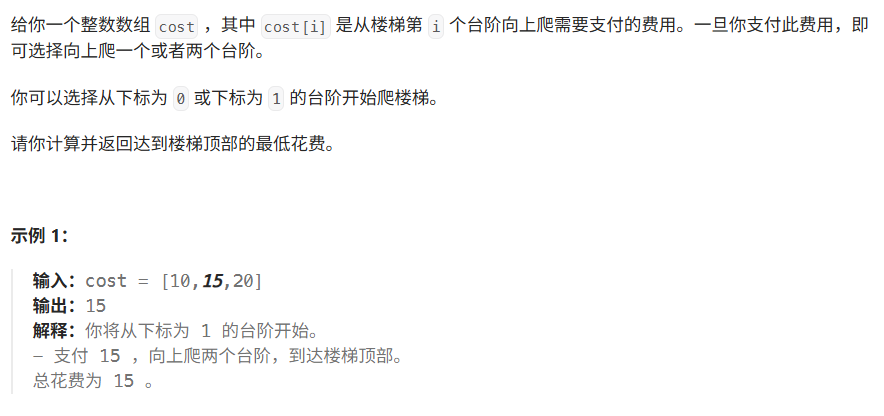 题目链接:https://leetcode.cn/problems/min-cost-climbing-stairs/description/