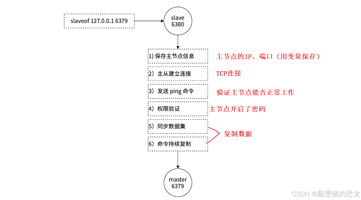 --slaveof{masterHost} {masterPort} ⽣效。- 直接使⽤redis命令: