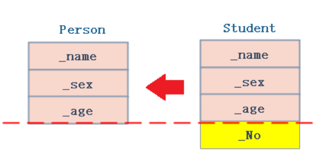 class Student : public Person //public 继承 ------ Print() 是 public, _name 是 protected, _age 不可访问