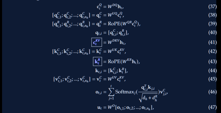 为了展示MLA的完整计算过程,我们在下面给出其完整公式: