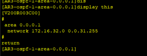 AR1\]ospf 1 router-id 1.1.1.1 \[AR1-ospf-1-area-0.0.0.1\]network 172.16.0.0 0.0.255.255  AR2  AR3   AR4  AR6   AR7   AR8  AR9   AR10  AR11  AR12  rip宣告 AR12 ## 全网通,访问公网且公网地址由ppp协议获取 **asbr设备宣告** **AR9和AR12** \[AR9-ospf-2\]default-route-advertise 写一条缺省到AR9,让AR10访问ospf1 中的路由时让AR9发送,这样就不用下发ospf1的路由到ospf2 \[AR9-ospf-1\]import-route ospf 2 ospf1中植入ospf2的路由 \[AR12-ospf-1\]import-route rip ospf1中植入rip的路由 **ISP设备(认证方)** \[ISP-Serial4/0/0\]ip address 45.0.0.2 24 \[ISP-LoopBack0\]ip address 5.5.5.5 24 用aaa认证执行ppp \[ISP-aaa\]local-user huawei password cipher 123456 创建账户密码 \[ISP-aaa\]local-user huawei service-type ppp 账户的用途为ppp \[ISP-Serial4/0/0\]ppp authentication-mode chap 进入接口下发ppp且认证方式改为为chap \[ISP-Serial4/0/0\]remote address 54.0.0.2 给接口下发IP54.0.0.2 **AR4(边界路由器,被认证方)** \[AR4-Serial4/0/1\]ppp chap user huawei 输入账号 \[AR4-Serial4/0/1\]ppp chap password cipher 123456 输入密码 \[AR4-Serial4/0/1\]ip address ppp-negotiate 接受ppp下发的ip  **配置NAT(让私网访问公网),必须写静态和下发缺省** \[AR4\]acl 2000 \[AR4-acl-basic-2000\]rule permit source 172.16.0.0 0.0.255.255 \[AR4-Serial4/0/1\]nat outbound 2000 \[AR4-ospf-1\]default-route-advertise **\[AR4\]ip route-static 0.0.0.0 0 45.0.0.2 写静态到公网接口** **\[AR4-ospf-1\]default-route-advertise always 下发缺省**  ## 加快收敛,把hallo时间改为2s **\[AR6-GigabitEthernet0/0/0\]ospf timer hello 2** **\[AR11-GigabitEthernet0/0/0\]ospf timer hello 2** ## **保证安全,给接口加认证** **\[AR6-GigabitEthernet0/0/0\]ospf authentication-mode md5 1 cipher 123** **\[AR11-GigabitEthernet0/0/0\]ospf authentication-mode md5 1 cipher 123**