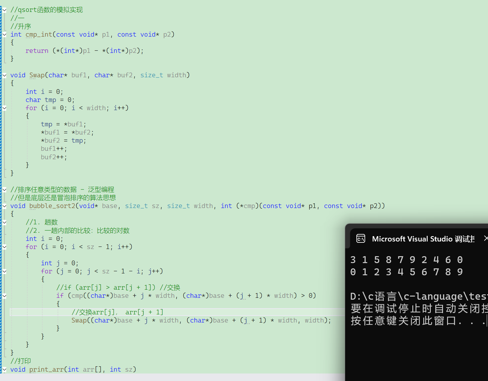 使⽤回调函数,模拟实现qsort(采⽤冒泡的⽅式)。