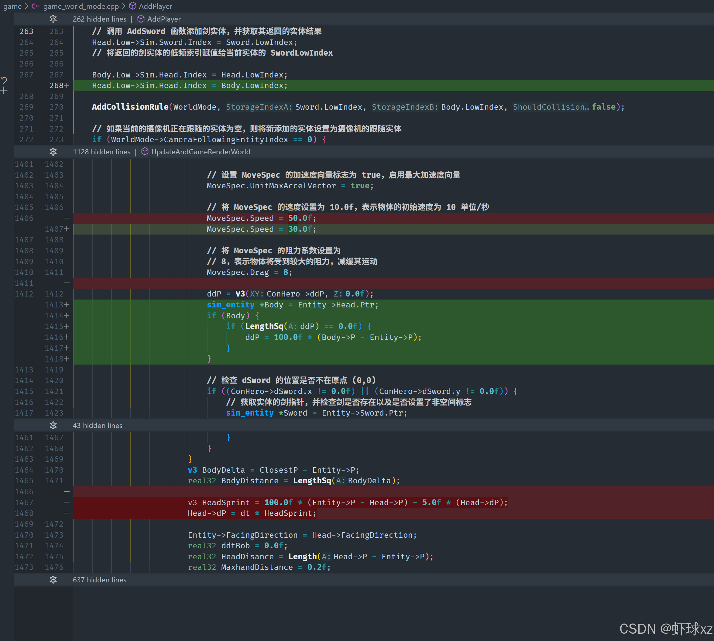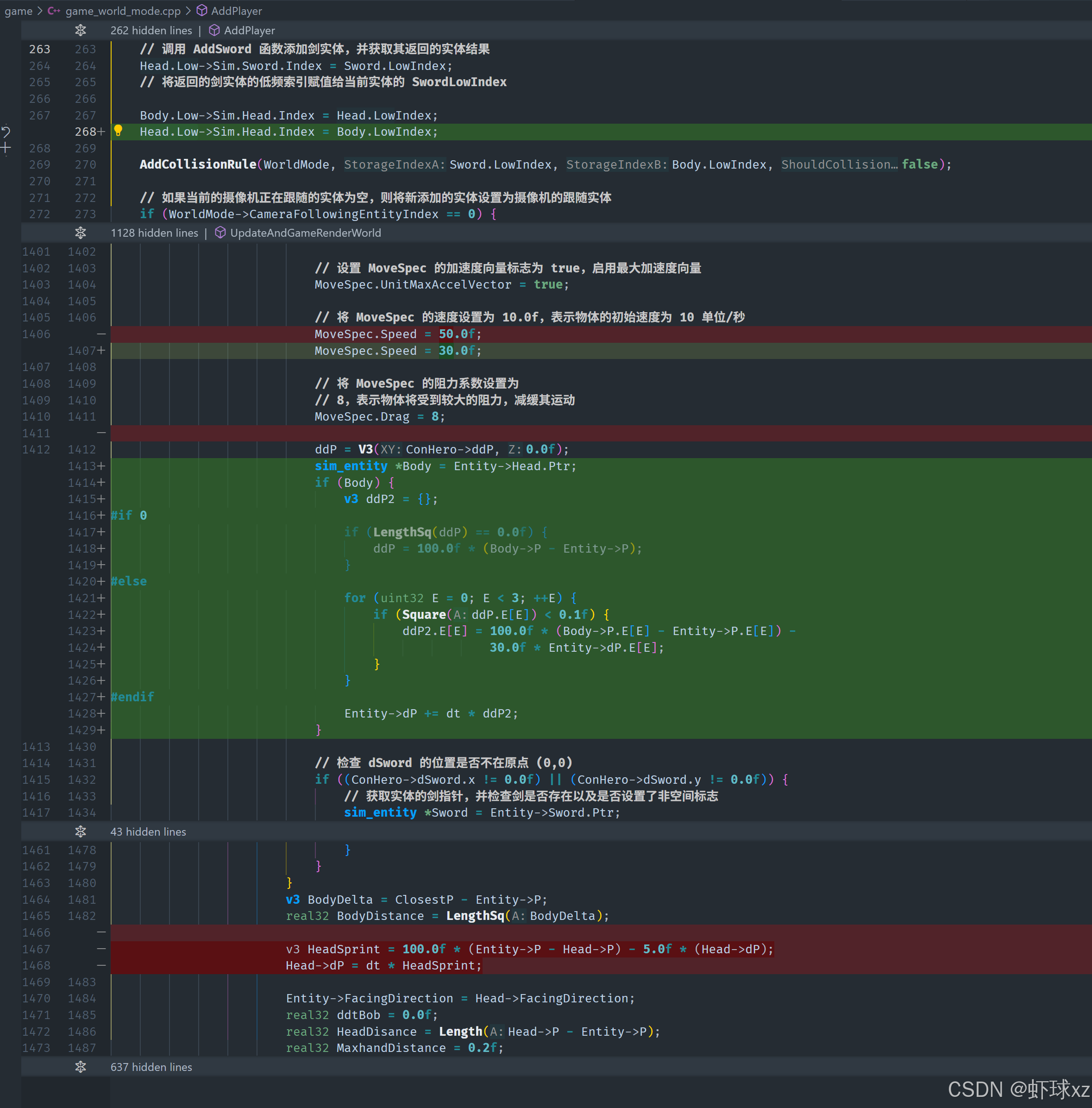 gdp,其大小根据头部偏移量和一些弹簧系数计算; - 然后这个向量被传入移动处理例程,在这个函数内部,会自动对输入向量进行归一化;